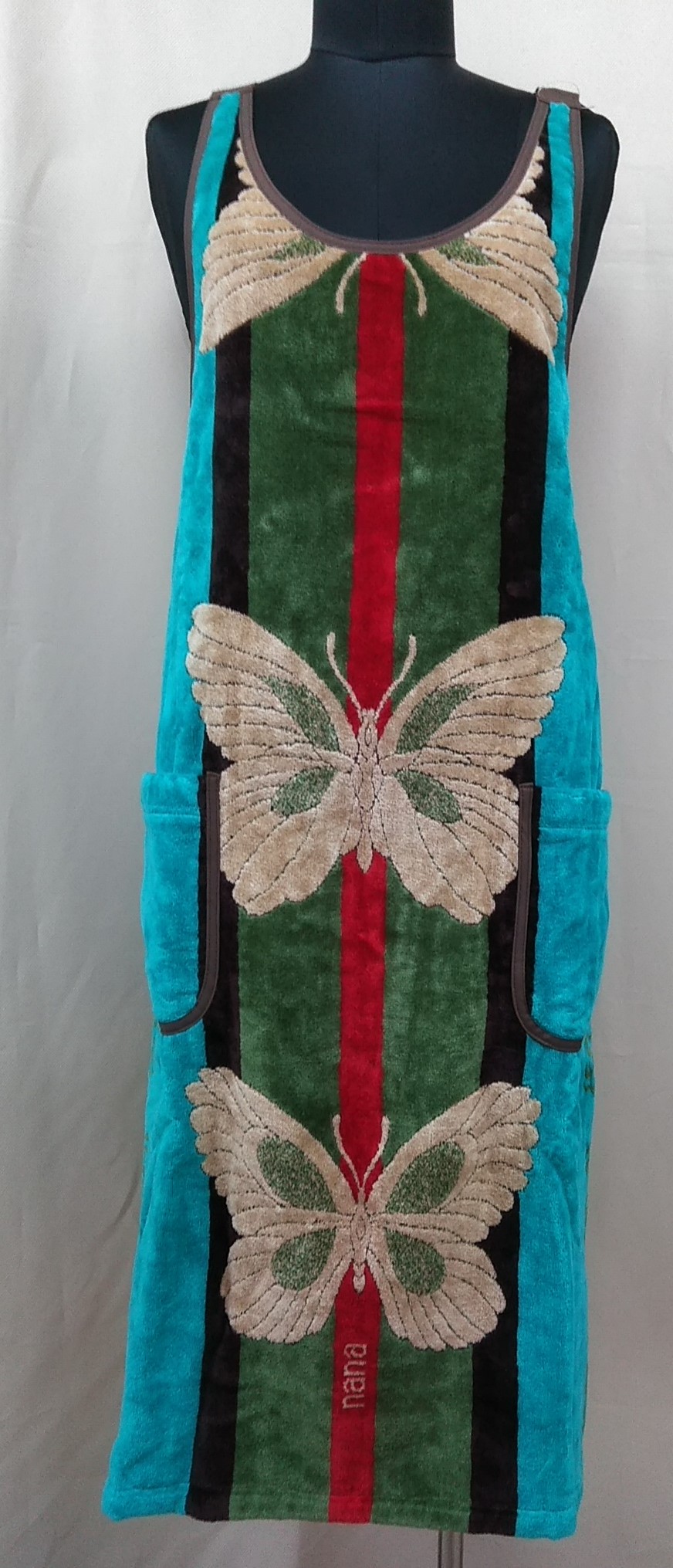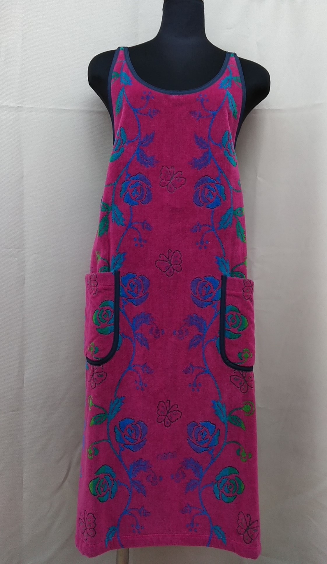 こちらの商品はウエストが広めに作られているので、後ろ姿も安心のデザインです。 華やかな色柄の商品ですので、毎日の家事が楽しくなりますね。 贈り物にもお使いください。 ラッピングもいたします。 他の色柄の商品もございます。 最新の在庫状況は電話かメールでお問合せ下さい。